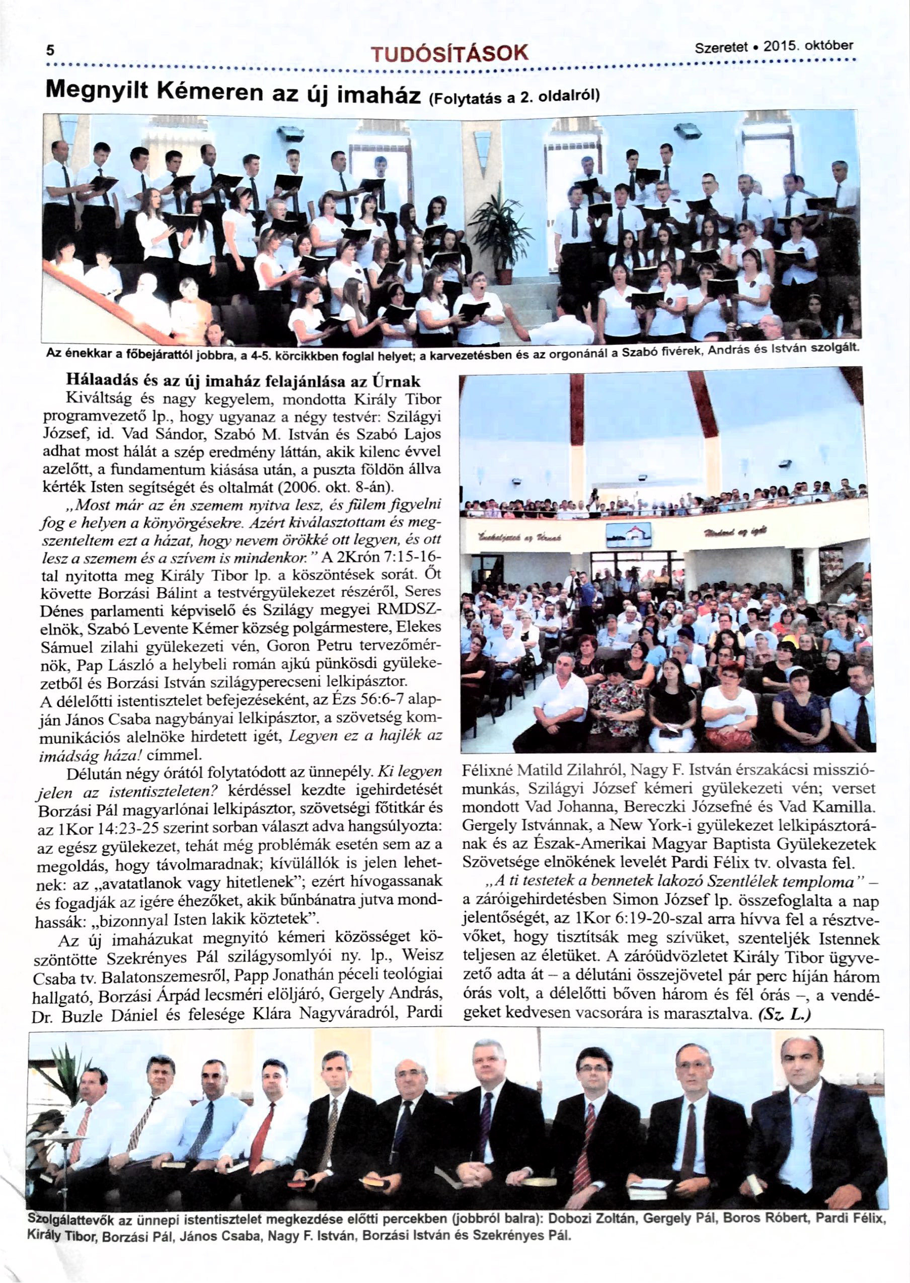 november 4, 2015 - 1808 × 2548 in Cikk és riport az Imaházmegnyitóról.