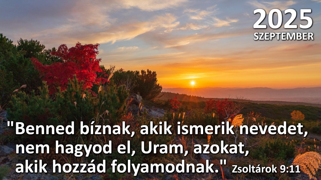 2025 szeptember hónap Igeverse Kémeri Baptista Gyülekezet / szeptember 8, 2025 “Benned bíznak, akik ismerik nevedet, nem hagyod el, Uram, azokat, akik hozzád folyamodnak.” Zsoltárok 9:11 MegosztásMegosztás Ajánlás egy barátnak email-ben(Új ablakban nyílik meg) E-mail Kattints ide a nyomtatáshoz(Új ablakban nyílik meg) Nyomtatás Facebookon való megosztáshoz kattintás ide.(Új ablakban nyílik meg) Facebook Click to share on X(Új ablakban nyílik meg) X Kattintson ide, hogy megoszthassa a Pinterest-en(Új ablakban nyílik meg) Pinterest Megosztom a LinkedInen(Új ablakban nyílik meg) Linkedin Kattintson ide, hogy megoszthassa a Tumblr-en(Új ablakban nyílik meg) Tumblr Megosztás: Pocket(Új ablakban nyílik meg) Pocket Tetszik Betöltés...