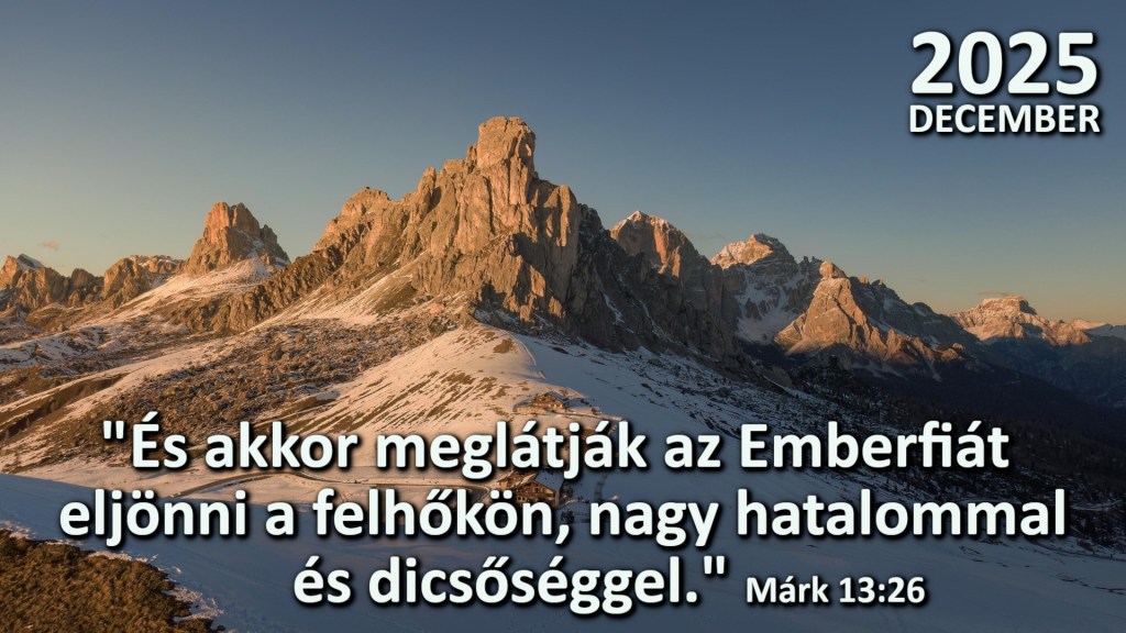 2025 december hónap Igeverse Kémeri Baptista Gyülekezet / december 13, 2025 “És akkor meglátják az Emberfiát eljönni a felhőkön, nagy hatalommal és dicsőséggel.” Márk 13:26 MegosztásMegosztás Email a link to a friend(Új ablakban nyílik meg) E-mail Nyomtatás(Új ablakban nyílik meg) Nyomtatás Megosztás Facebookon(Új ablakban nyílik meg) Facebook Share on X(Új ablakban nyílik meg) X Share on Pinterest(Új ablakban nyílik meg) Pinterest Share on LinkedIn(Új ablakban nyílik meg) Linkedin Megosztása a Tumblr-n(Új ablakban nyílik meg) Tumblr Share on Pocket(Új ablakban nyílik meg) Pocket Tetszik Betöltés...