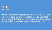 “Mivel tehát már elfogadtátok Krisztus Jézust, az Urat, éljetek is őbenne. Gyökerezzetek meg és épüljetek fel őbenne, erősödjetek meg a hit által, amint tanultátok, és hálaadásotok legyen egyre bőségesebb.” Kolossé 2:6-7
