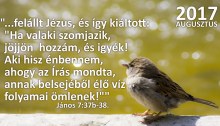 “…felállt Jézus, és így kiáltott: „Ha valaki szomjazik, jöjjön hozzám, és igyék! Aki hisz énbennem, ahogy az Írás mondta, annak belsejéből élő víz folyamai ömlenek!”” János 7:37b-38