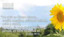 “De akik az Úrban bíznak, erejük megújul, szárnyra kelnek, mint a sasok, futnak, és nem lankadnak meg, járnak, és nem fáradnak el.” Ézsaiás 40:31.