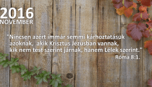“Nincsen azért immár semmi kárhoztatásuk azoknak, a kik Krisztus Jézusban vannak, kik nem test szerint járnak, hanem Lélek szerint.” Róma 8:1.