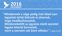 “Mindennek a vége pedig már közel van: legyetek tehát bölcsek és józanok, hogy imádkozhassatok.