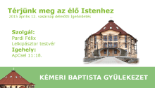 Szolgál: Pardi Félix lelkipásztor testvér.